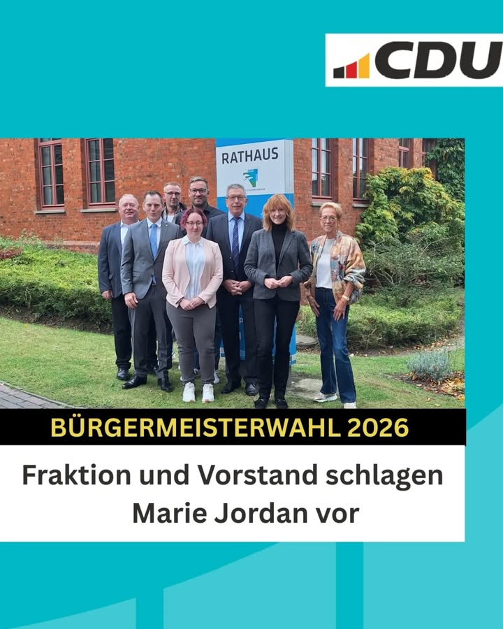 CDU schlägt Marie Jordan als Bürgermeisterkandidatir vorDer CDU-Stadtverbandsvorstand und die CDU-Stadtratsfraktion haben in ihrer gemeinsamen Sitzung einstimmig beschlossen, der Aufstellungsversammlung am 12. Dezember vorzuschlagen, Marie Jordan als Bürgermeisterkandidatin zu wählen.Marie Jordan ist gebürtige Osterholz-Scharmbeckerin und seit 15 Jahren in Osterholz- Scharmbeck als Rechtsanwältin selbständig tätig. Ehrenamtlich ist sie in verschiedener Vereinen aktiv. Seit 2011 ist sie direkt gewähltes Mitglied des Stadtrates und Kreistages und seit neun Jahren Ortsvorsteherin der Ortschaft Garlstedt. Seit sechs Jahren führt sie die CDU-Stadtratsfraktion und seit zwei Jahren auch den Osterholz-Scharmbecker CDU Stadtverband.,,Mit Marie Jordan stellen wir eine Persönlichkeit auf, die fachliche Kompetenz, Tatkraft und klare Zukunftsvisionen für unsere Stadt vereint", betont der stellvertretende CDU Stadtverbandsvorsitzende Dominik Schulte. ,Sie kennt die Herausforderungen vor Ort und bringt die notwendige Erfahrung und Energie mit, um Osterholz-Scharmbeck endlich weiter voranzubringen."Auch UIrich Messerschmidt betonte im Namen der CDU-Stadtratsfraktion, dass diese geschlossen hinter der Kandidatur stehe: , Wir sind überzeugt, dass Marie Jordan die richtige Wahl ist, um die Interessen der Bürgerinnen und Bürger mit Nachdruck zu vertreten und die Stadt verantwortungsvoll zu gestalten."Der ebenfalls anwesende Bundestagsabgeordnete Andreas Mattfeldt begrüßte die Entscheidung ausdrücklich: ,,Marie Jordan ist eine Kandidatin mit Biss und Weitblick. Als Volljuristin verfügt sie über die fachliche Qualifikation, die für das Amt der Bürgermeisterir unerlässlich ist. Sie wird die Stadt mit Kompetenz und Leidenschaft führen."Mit der Kandidatur von Marie Jordan setzt die CDU Osterholz-Scharmbeck ein starkes Zeichen für eine zukunftsorientierte und verantwortungsbewusste Kommunalpolitik.